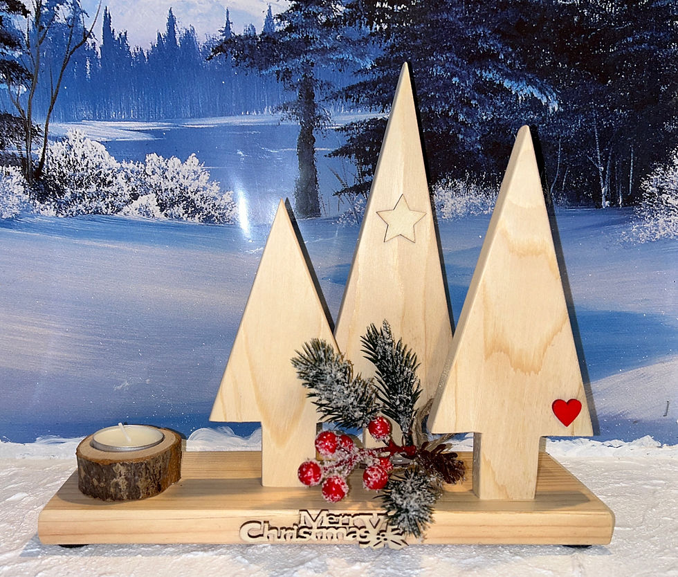 3 Xmas Tree 1068 (Natural Wood) with Tealight Holder 1068